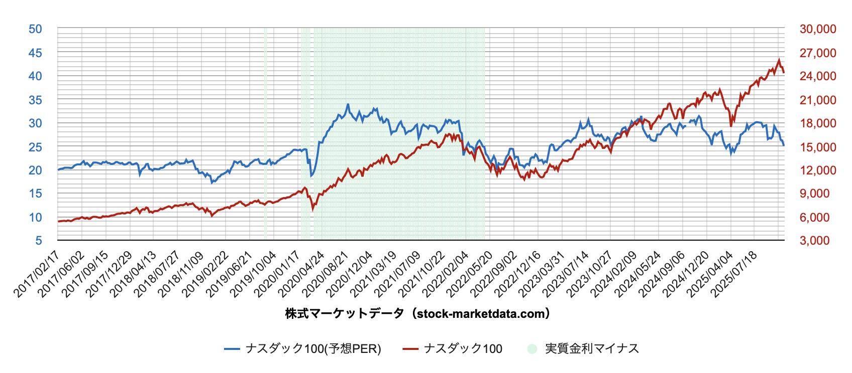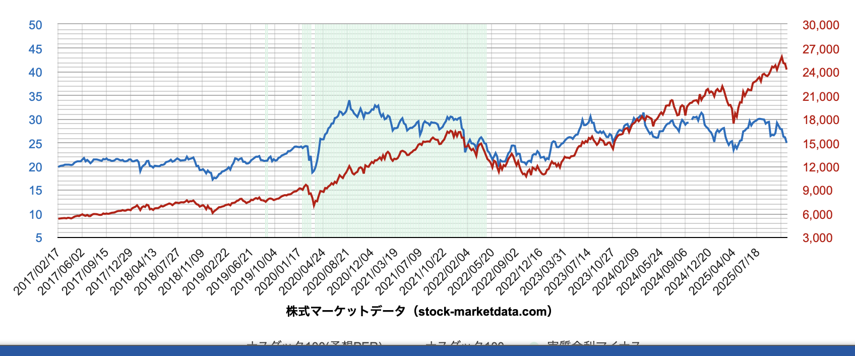 NASDAQのPERは30倍を超え、歴史的な割高圏で推移してきたからだ。
