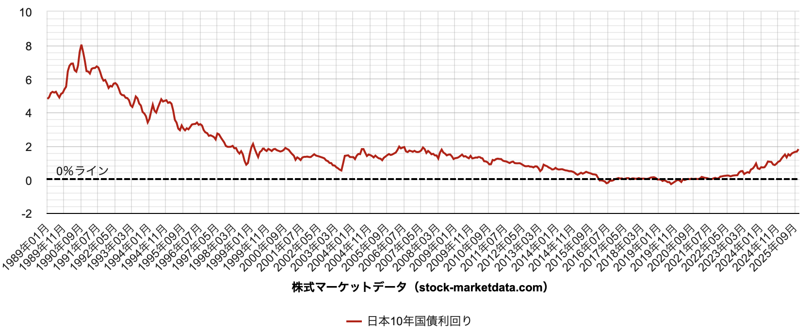 10年債利回りの長期推移(1989年〜2025年まで)
