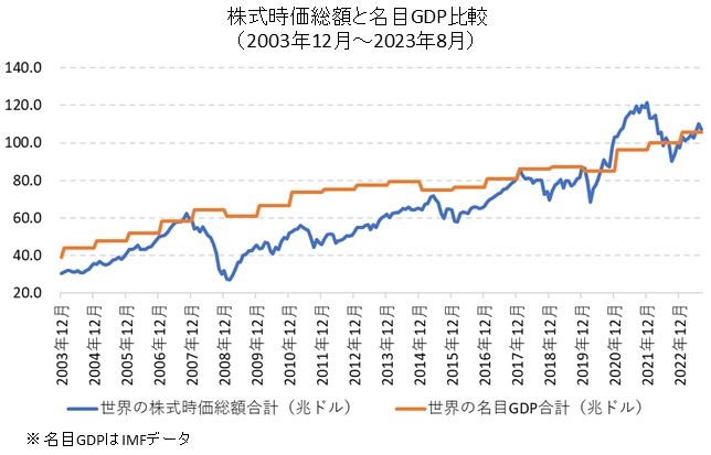 確かに名目経済成長と株式時価総額は連動する傾向がある。
